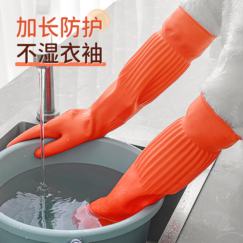加厚橡胶手套家用洗碗专用加绒加长款防水耐用冬季洗碗洗衣服专用