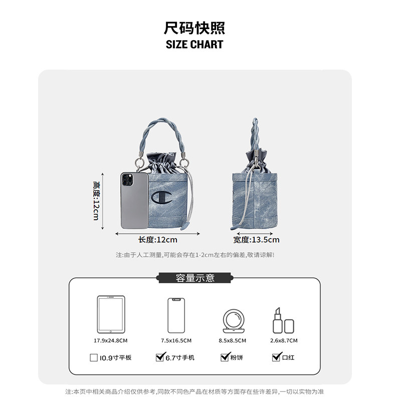 Champion冠军官方25春季新款水桶包男女手提包斜挎包上班通勤包包