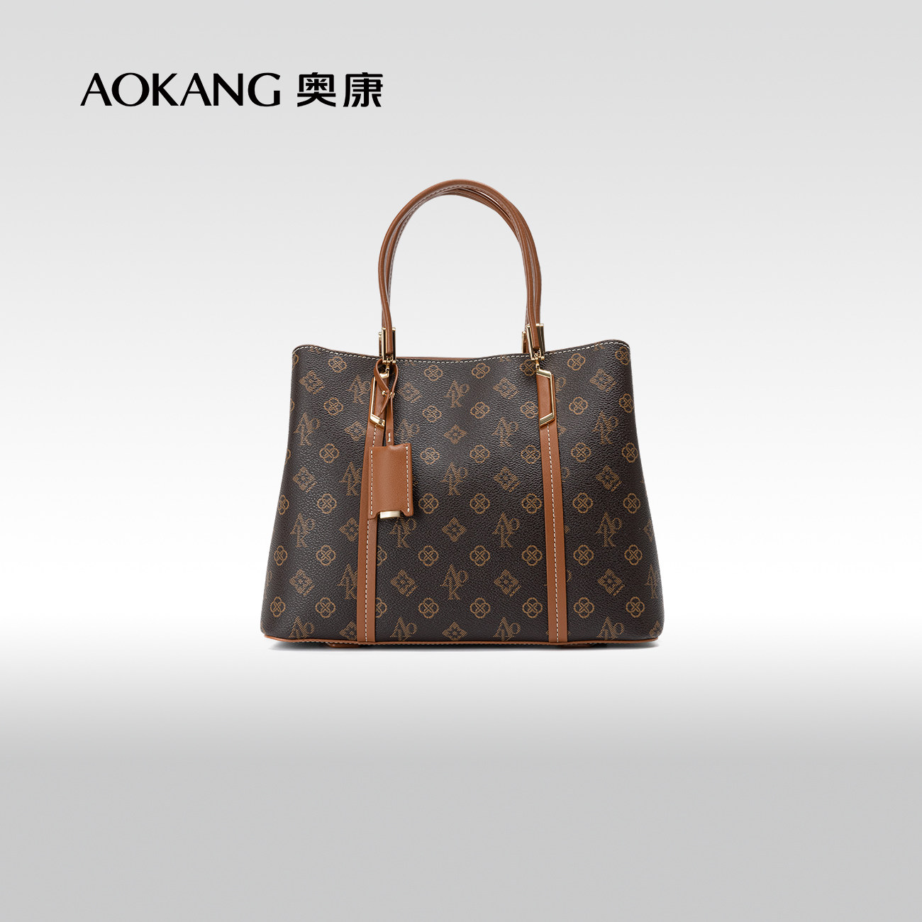 奥康女士手提包新款时尚复古印花大容量手提单肩包潮流妈妈包