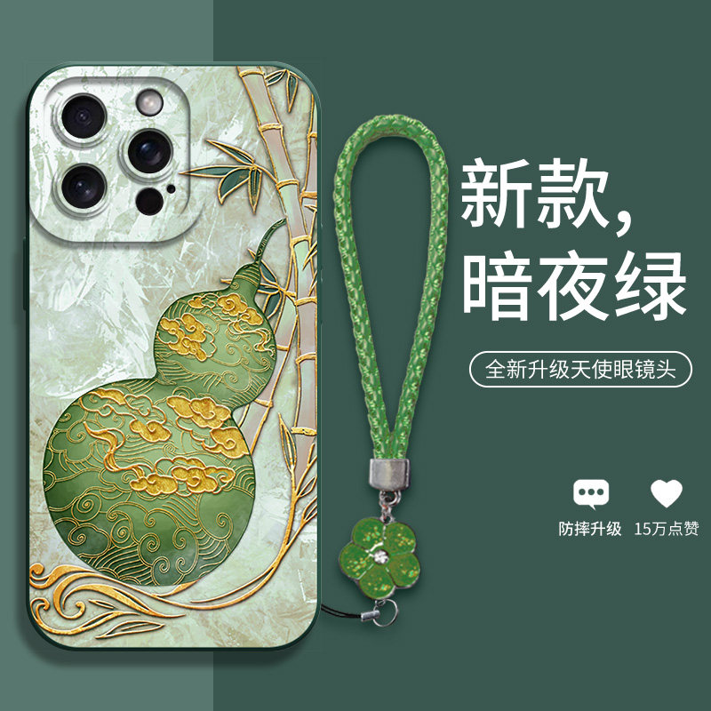 金丝葫芦适用于苹果15Pro手机壳15新款iPhone17ProMax中国风新中式14pro女款苹果17镜头全包12硅胶11挂绳壳