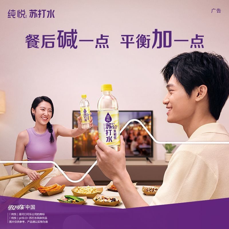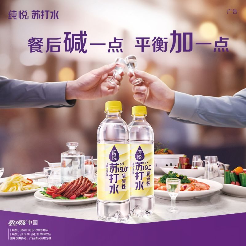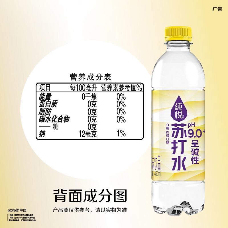 可口可乐纯悦苏打水柠檬味450ml*15瓶0糖饮料碱性水整箱包邮汽水