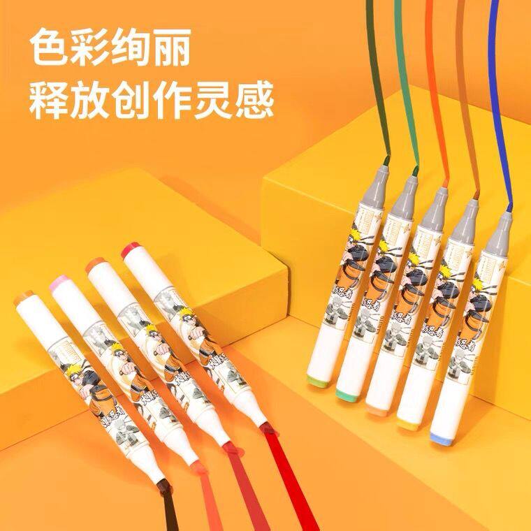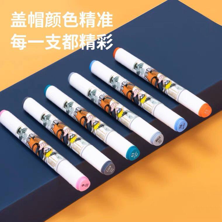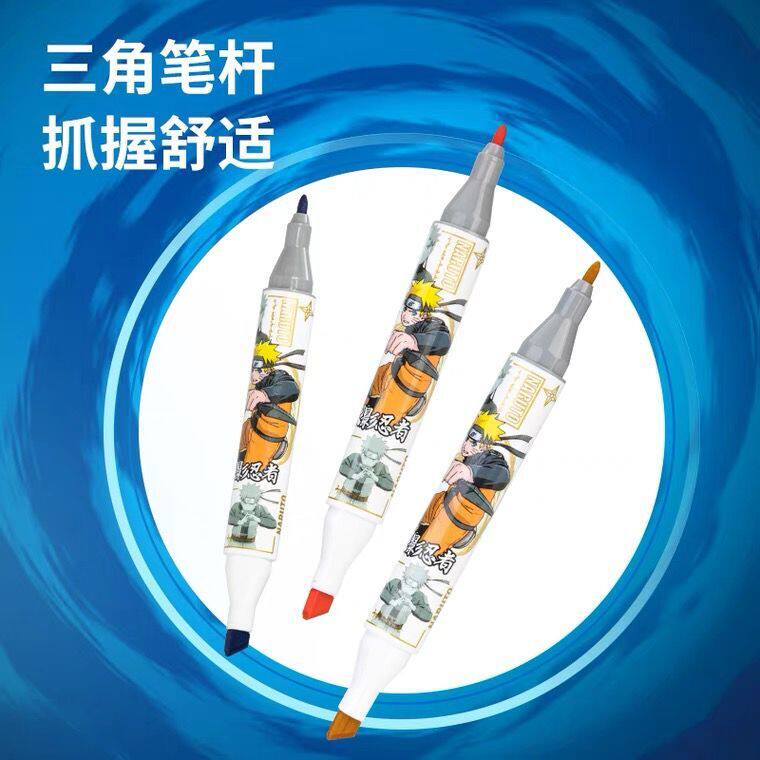 得力火影忍者马克笔三角杆双头酒精性美术专用套装不易透色正版60动漫48绘画36彩色24水彩笔油性小学生