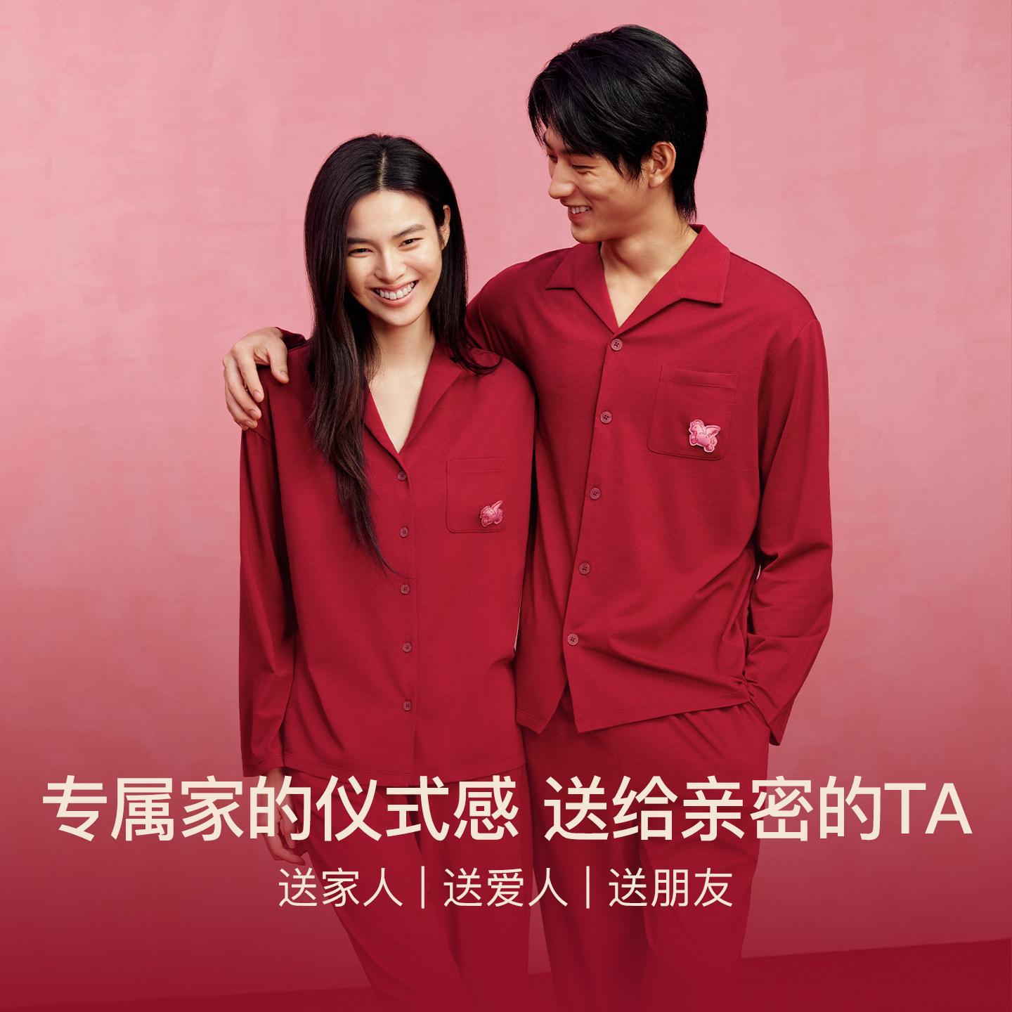 ubras奶酪绒家居服女士婚礼本命年红色情侣套装男款长袖长裤秋冬