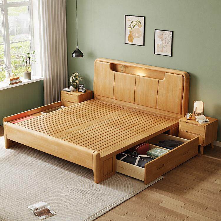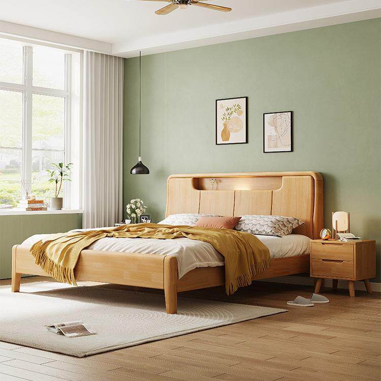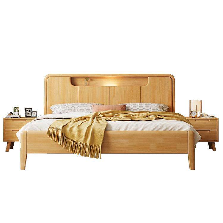实木床卧室1.8m现代简约硬靠带夜灯双人大床1.5m小户型单人床