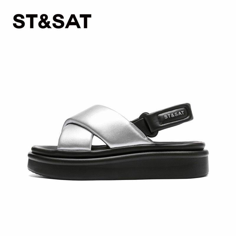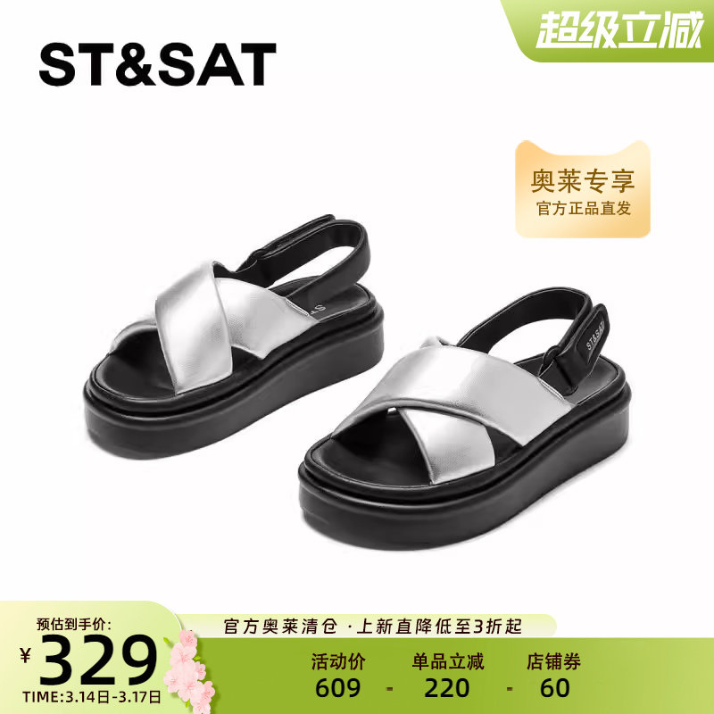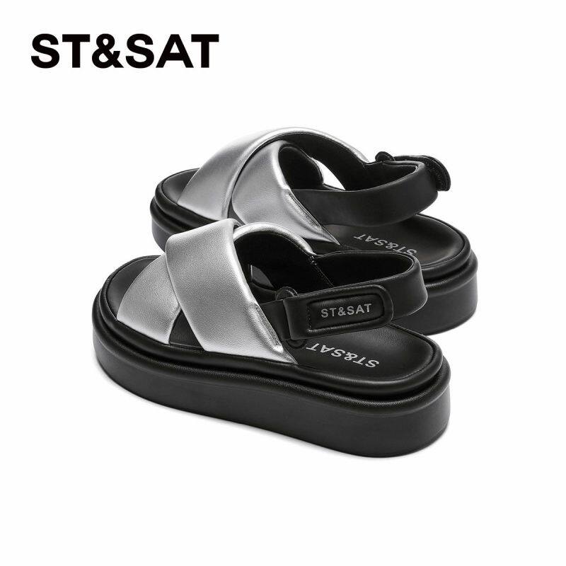 星期六凉鞋女夏季新款交叉带百搭休闲露趾外穿拖鞋SSC11150EX