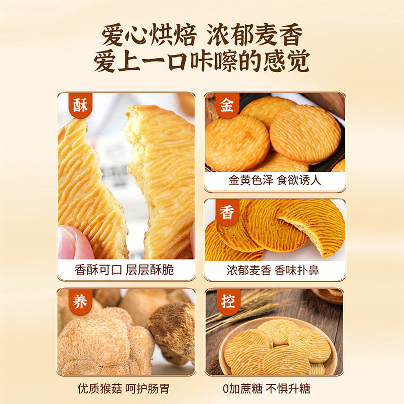 猴头菇猴菇饼干无糖精旗舰店养糖尿人食品零食大全专用糖人胃控糖