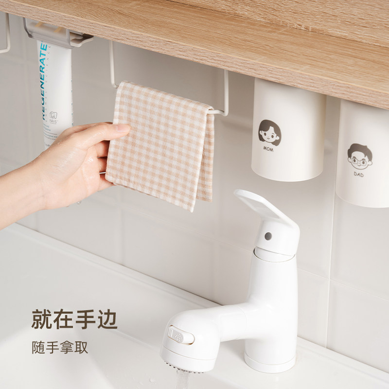 镜子下磁吸毛巾架迷你吸盘小方巾架子浴室吊柜挂杆洗漱台倒挂收纳