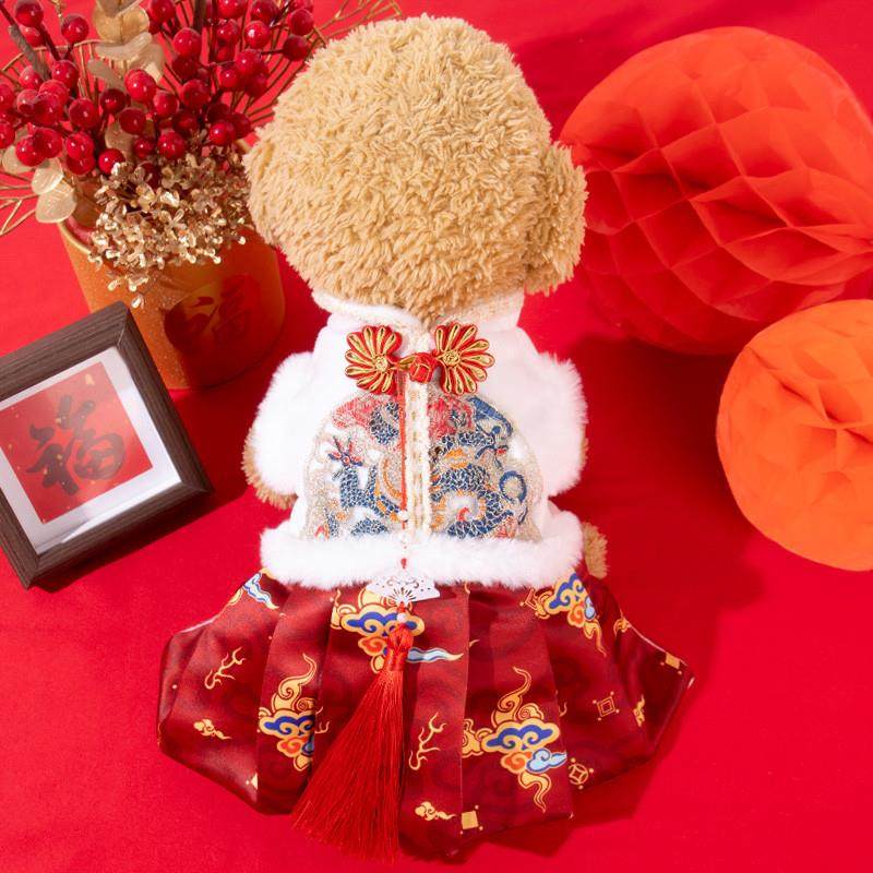 狗狗衣服秋冬新年唐装泰迪比熊博美宠物过年保暖猫咪中国风马面裙