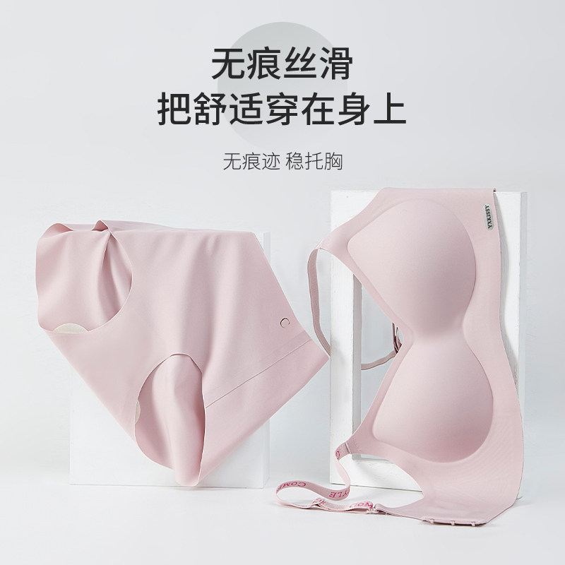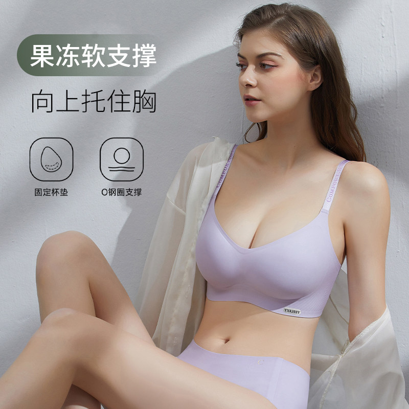 YXKISSY氧心无痕果冻条内衣女聚拢防下垂无钢圈软支撑文胸套装