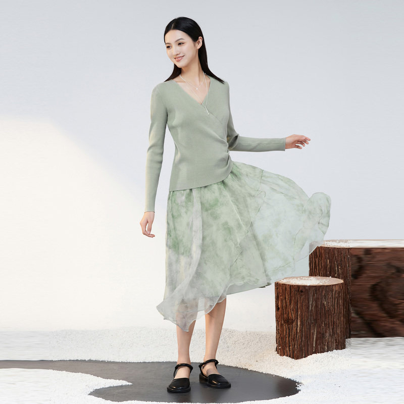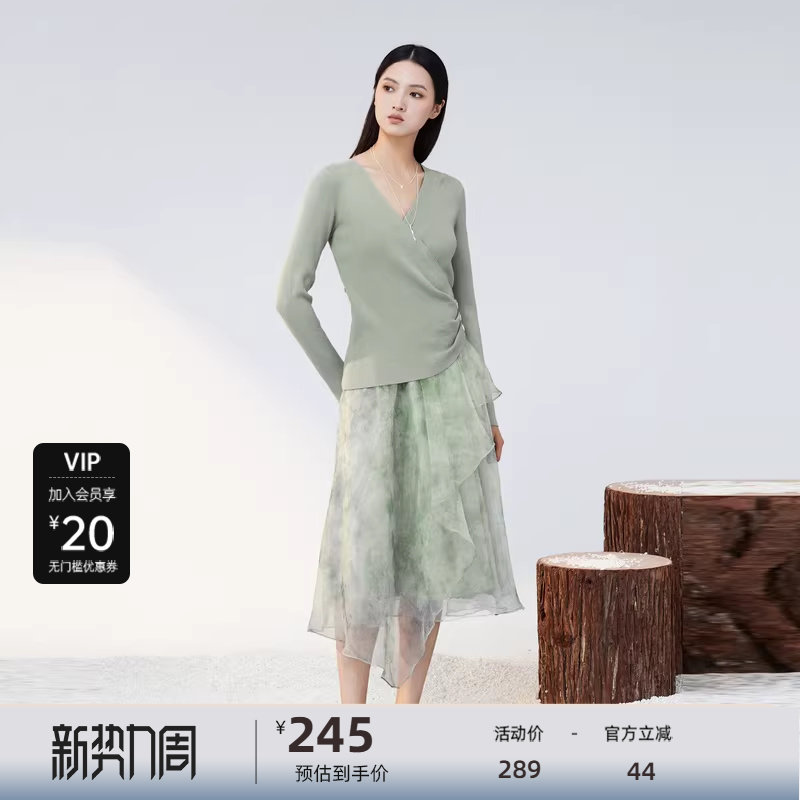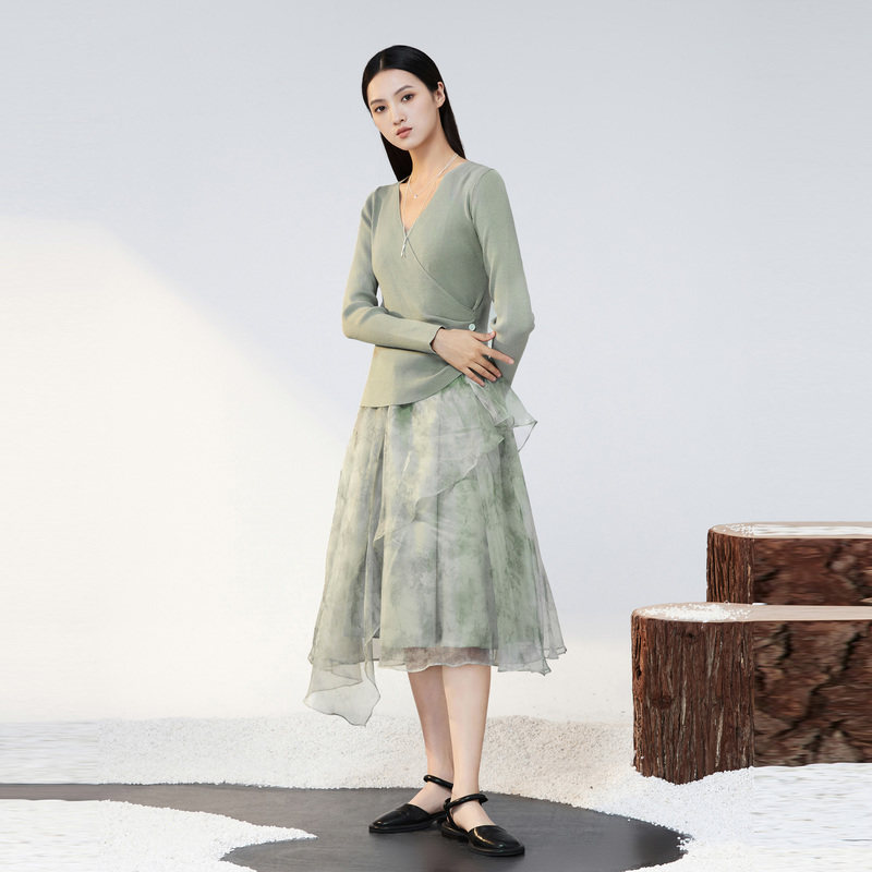BANANA CICI2026年春季新款荷叶边V领针织衫/连衣裙