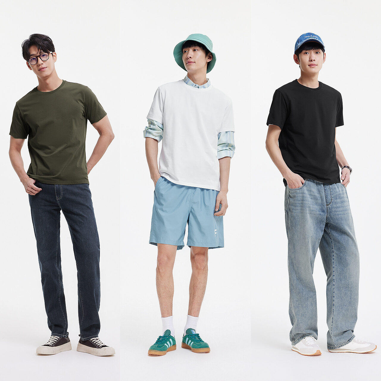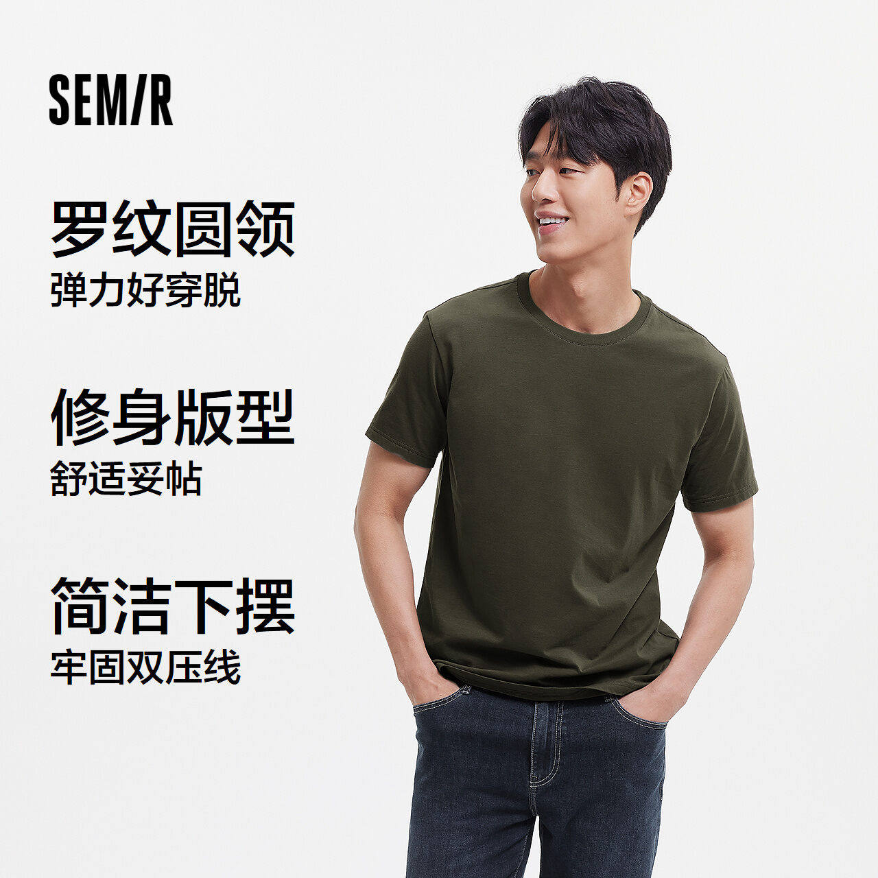 [商场同款]森马短袖T恤男简约纯色弹力修身2025夏季新款上衣百搭