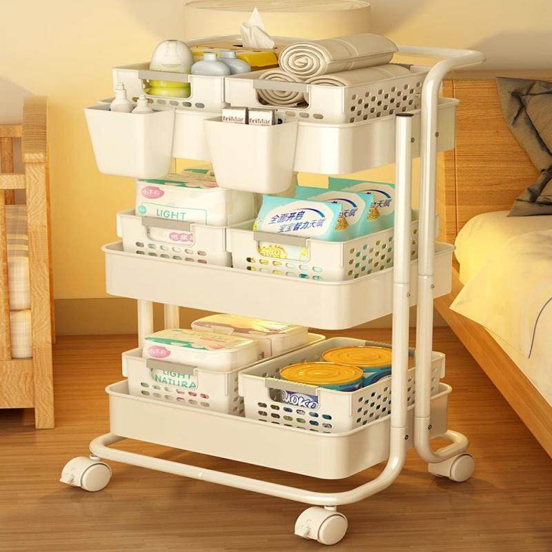 小推车置物架厨房落地多层客厅移动书架子婴儿卧室零食收纳储物架