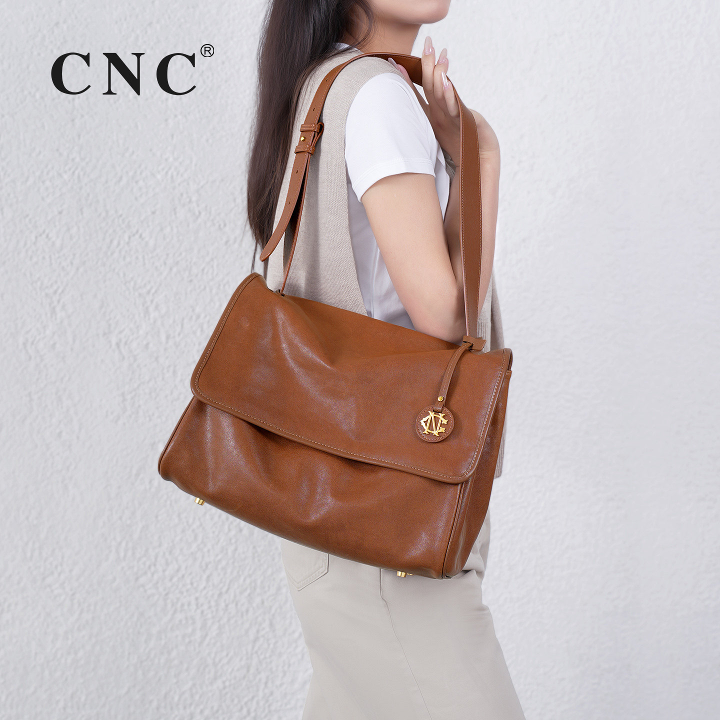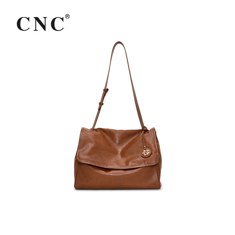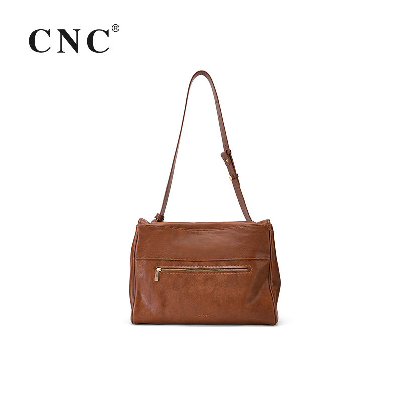 CNC复古邮差包 超软植鞣小牛皮单肩斜挎包通勤大容量托特包