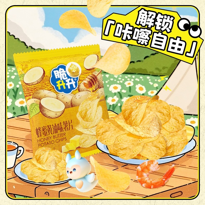 脆升升薯片蜂蜜黄油味60g大包装追剧小零食办公室脆生生休闲小吃
