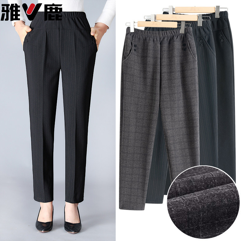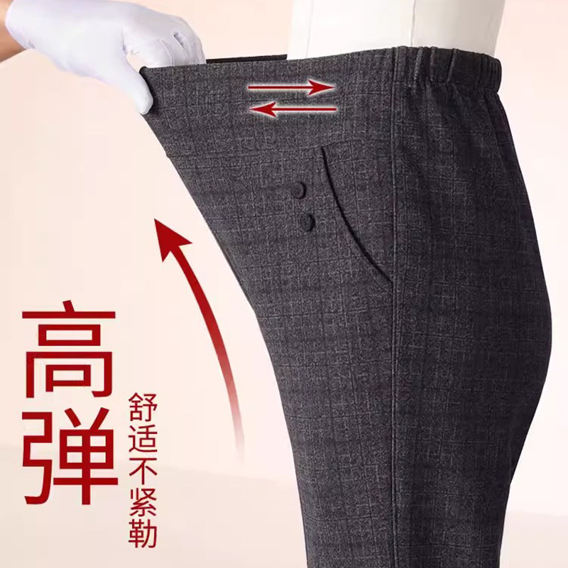 妈妈裤子春秋款松紧高腰弹力中老年女裤宽松大码直筒奶奶加绒长裤