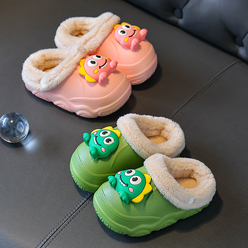 恐龙儿童棉拖鞋男童秋冬季防水室内可爱卡通保暖防滑居家宝宝棉鞋