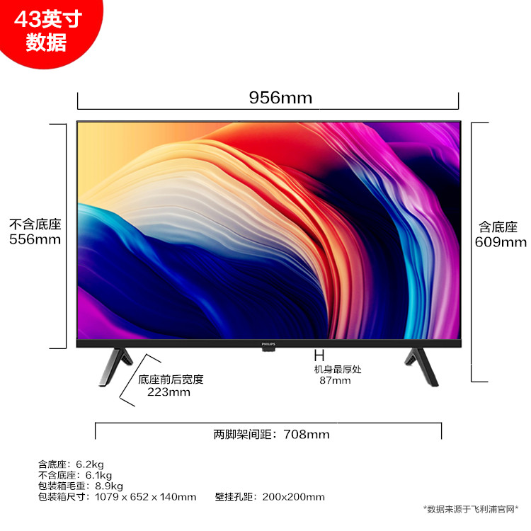 飞利浦43英寸全面屏液晶电视机1080P智能网络全高清HDMi监控屏幕