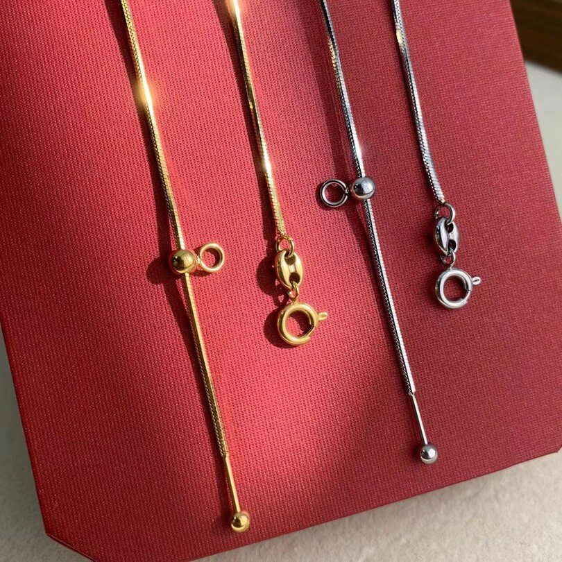 可调节针式万能链吊坠替换项链串珠小孔金色银色素链男女不掉色无