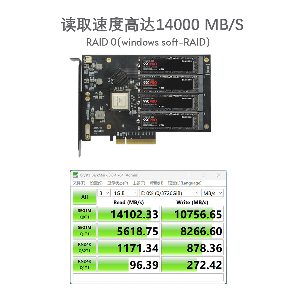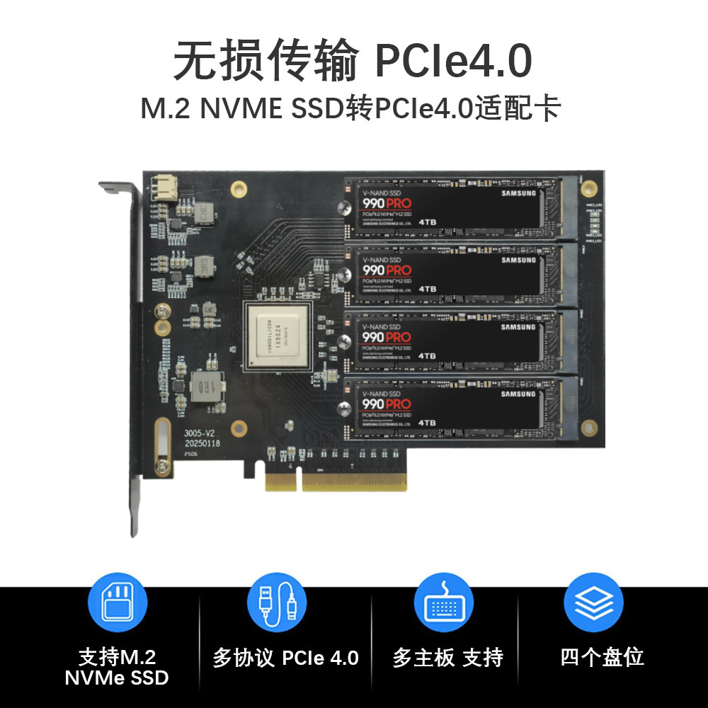 3005k PCIe4.0转M.2 NVME SSD4盘 软RAID 阵列扩展卡免驱动IX8024