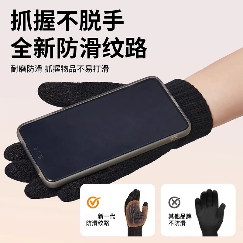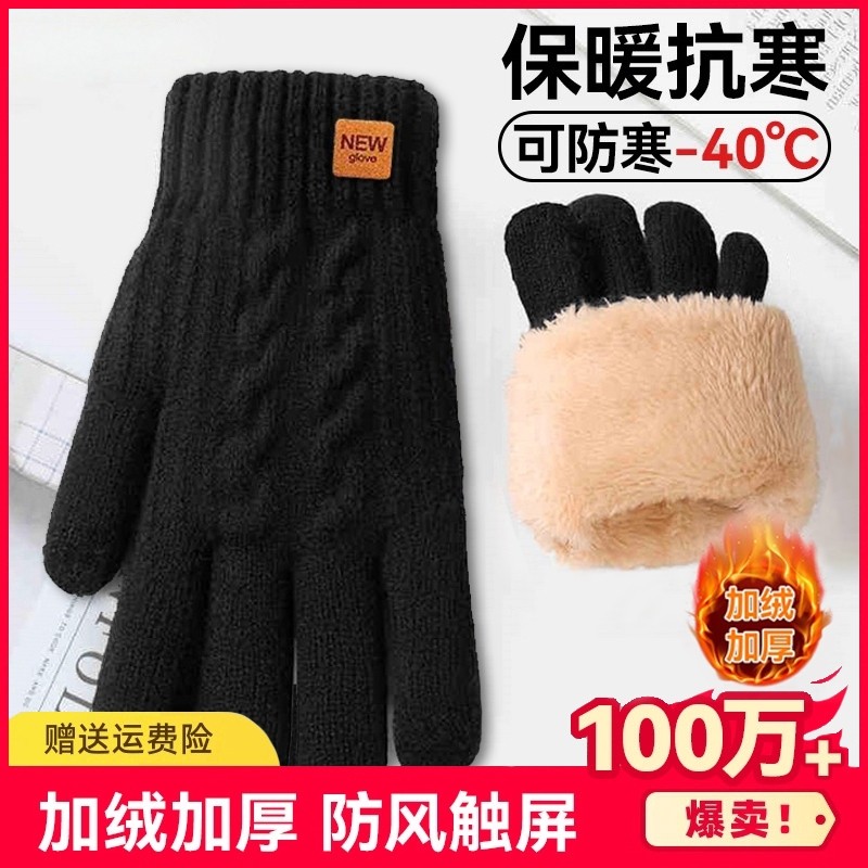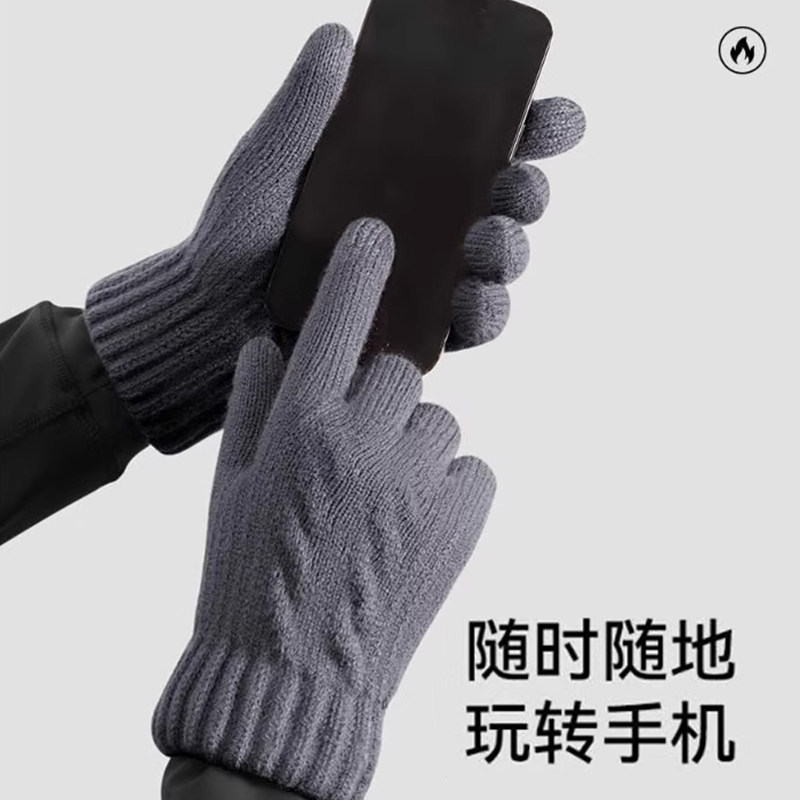 针织手套男秋冬季可触屏防寒保暖针织毛线加厚骑行开车女薄款黑色