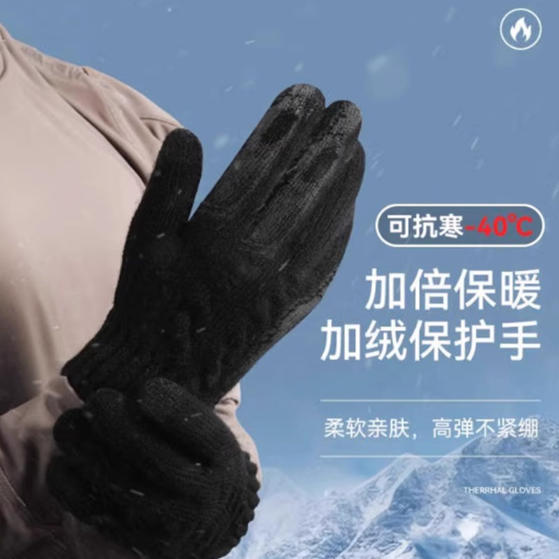 骑行防寒手套加厚加绒男女士冬季保暖双层毛线大手大码手套户外