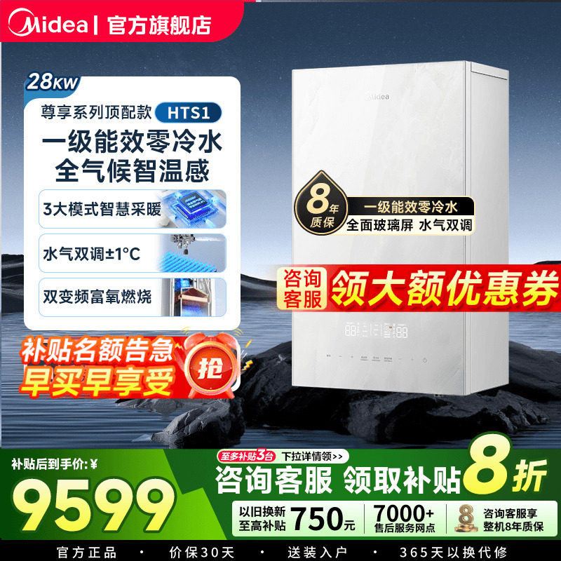 美的壁挂炉HTS1家用一级能效零冷水天然气采暖炉地暖锅炉热水器