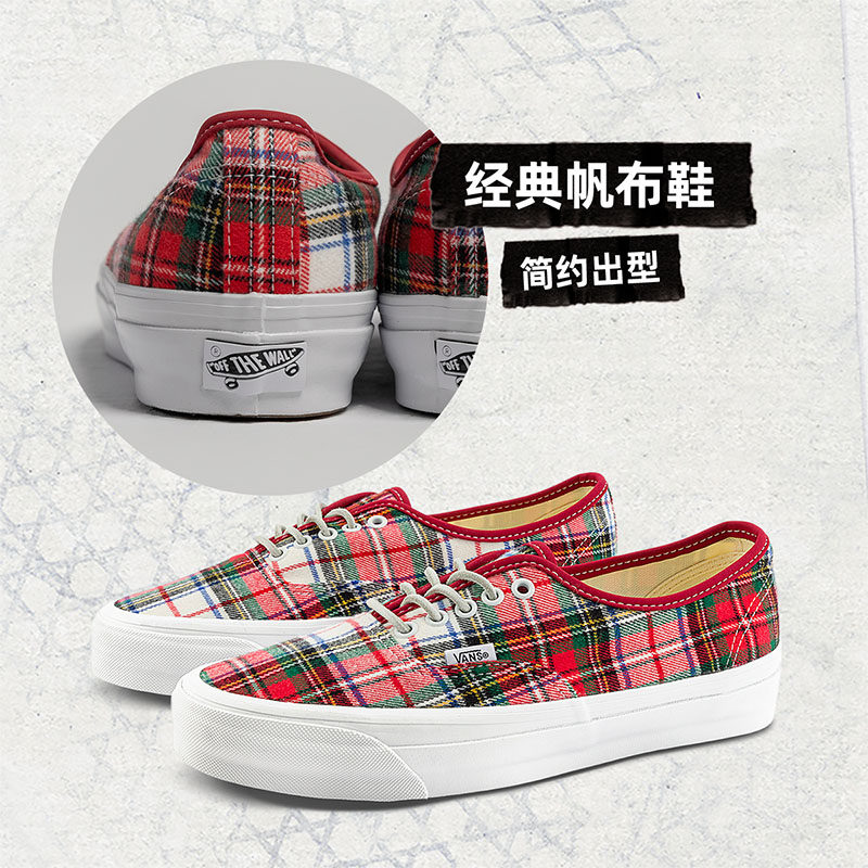 Vans范斯官方 Authentic红色格子英伦学院风男鞋女鞋帆布鞋