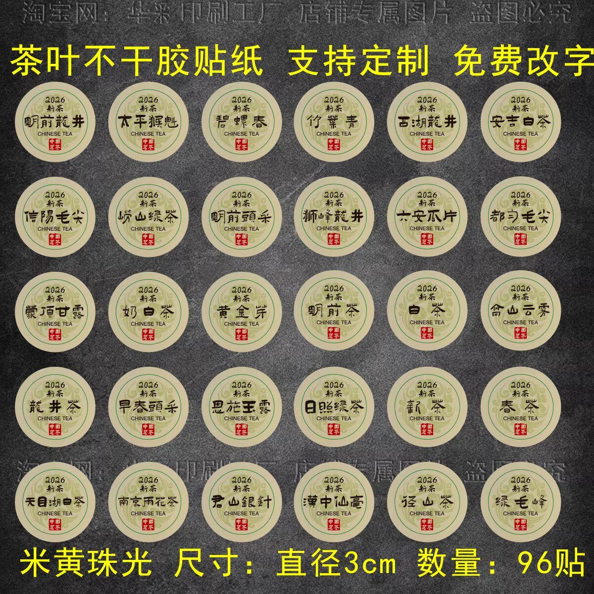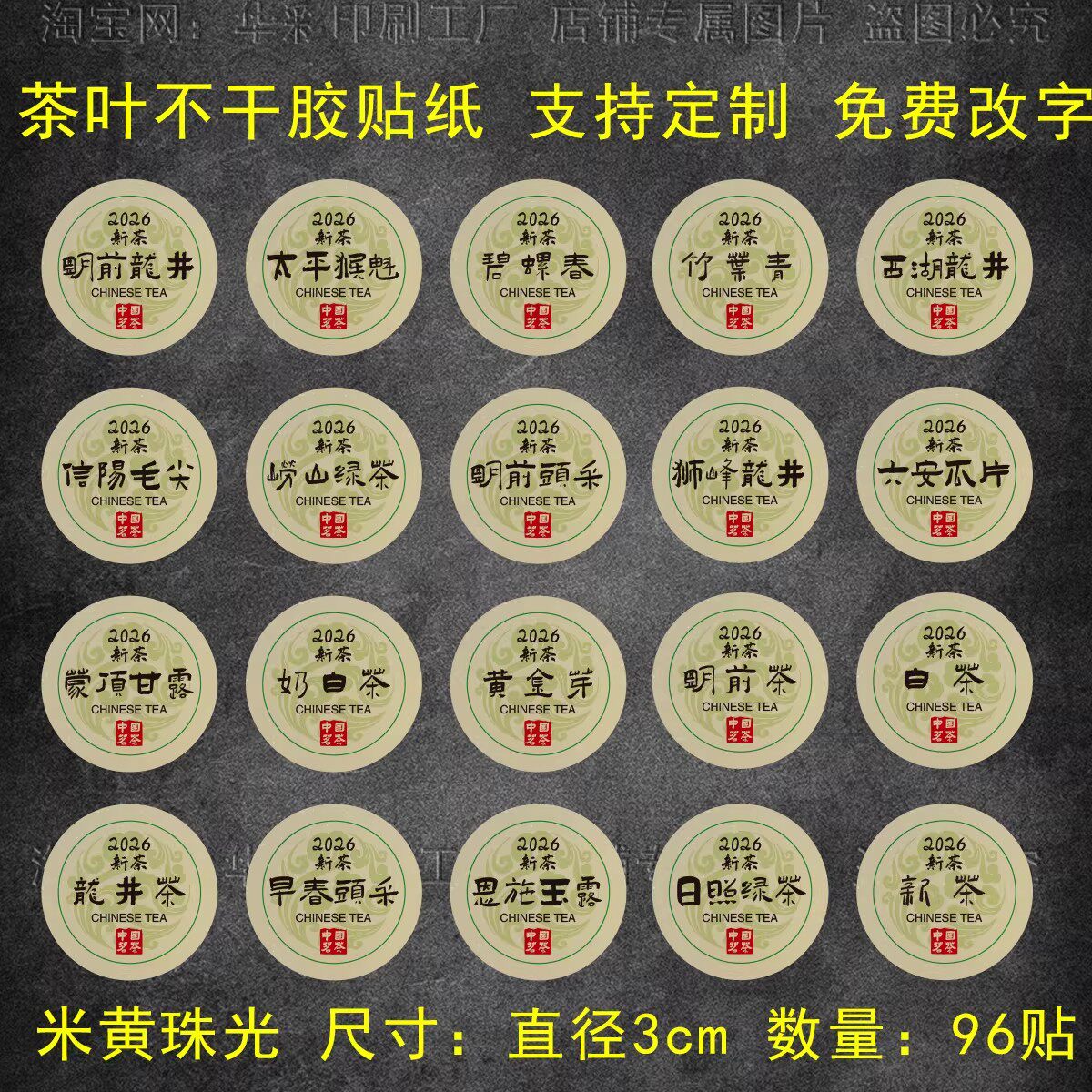 2026年新茶茶叶标签不干胶贴纸黄金芽明前龙井绿茶礼盒包装封口贴