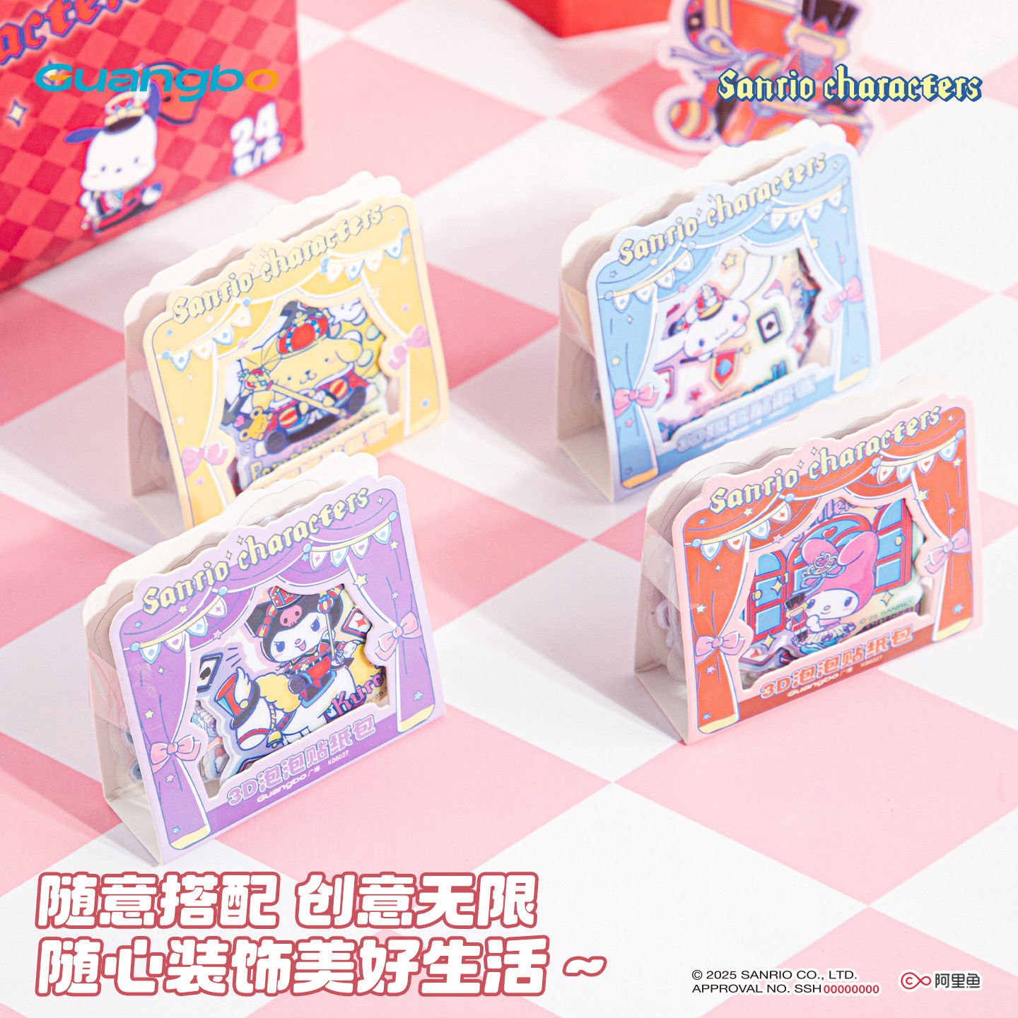 广博三丽鸥文具3D泡泡贴纸包减压摇摇贴DIY填色贴纸本造景贴纸书水晶手帐贴纸和纸冷烫圣诞贴纸镭射闪贴贴画