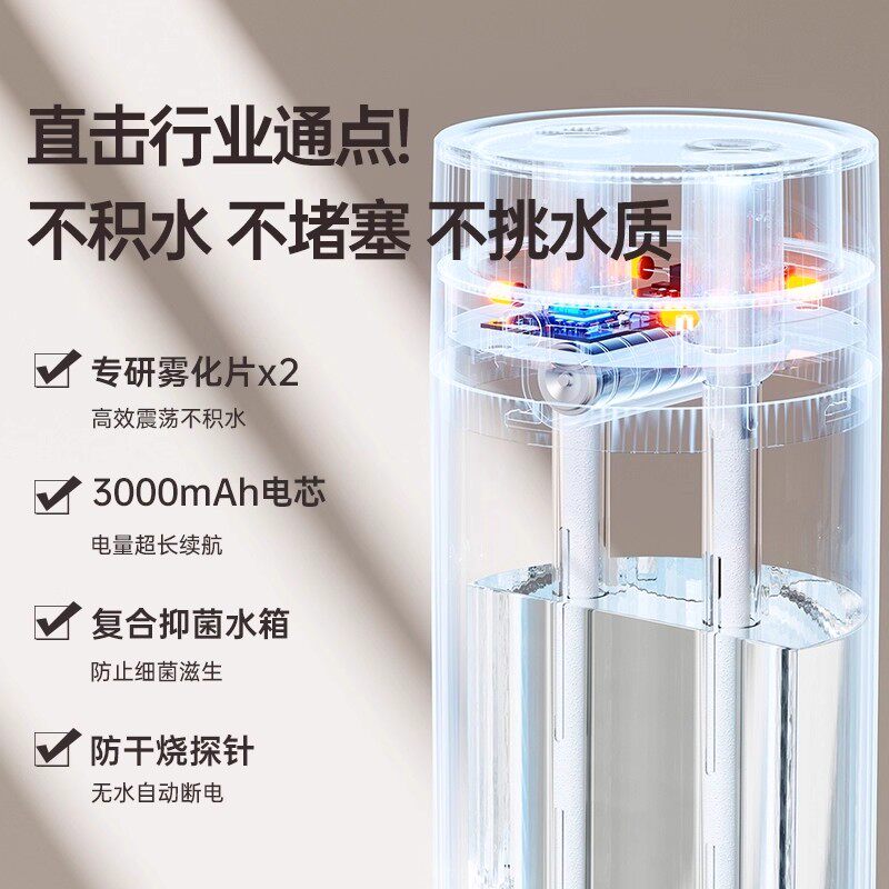 加湿器办公室桌面家用卧室静音补水神器双喷迷你大雾量便携usb充电长续航大喷雾小型保湿器宿舍学生2025新款