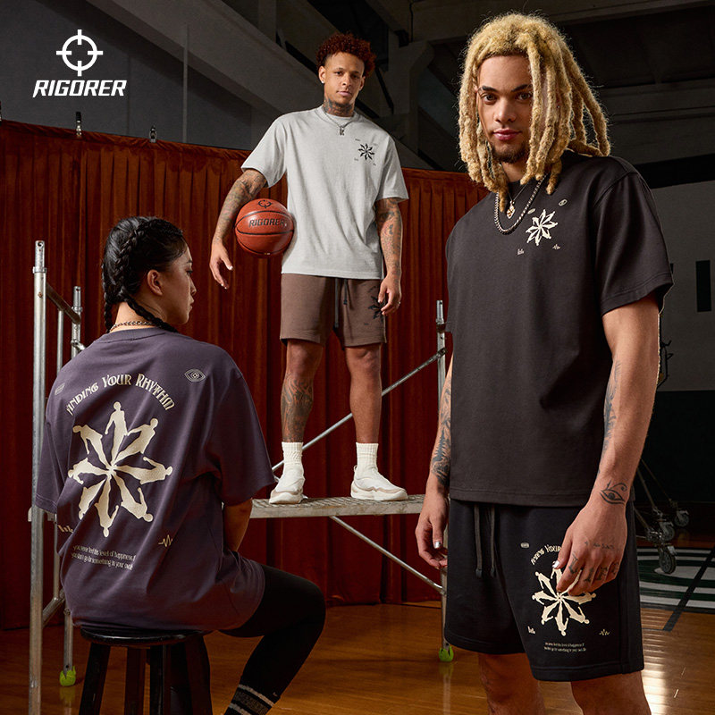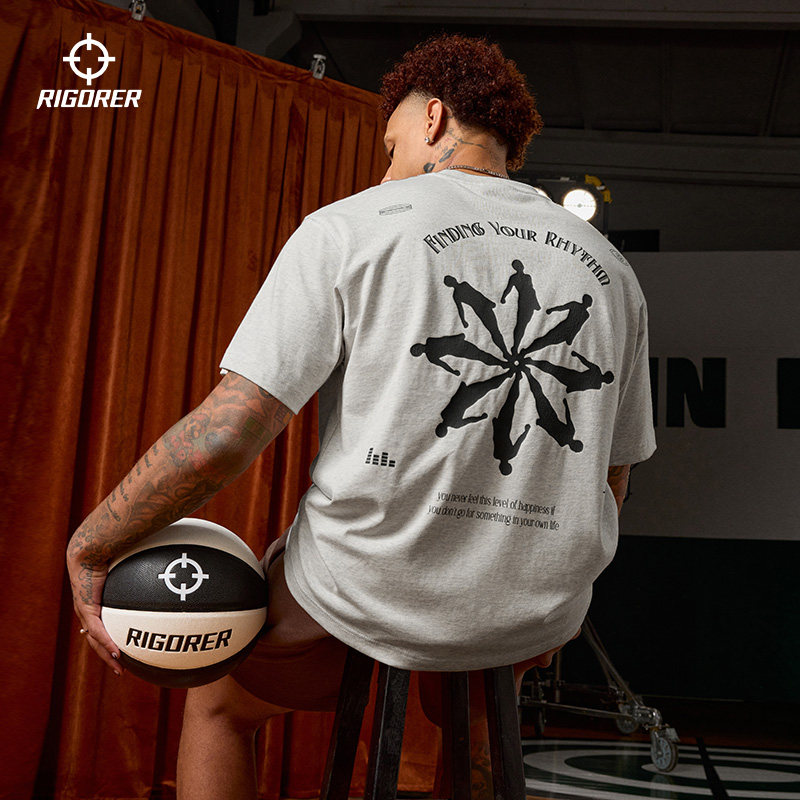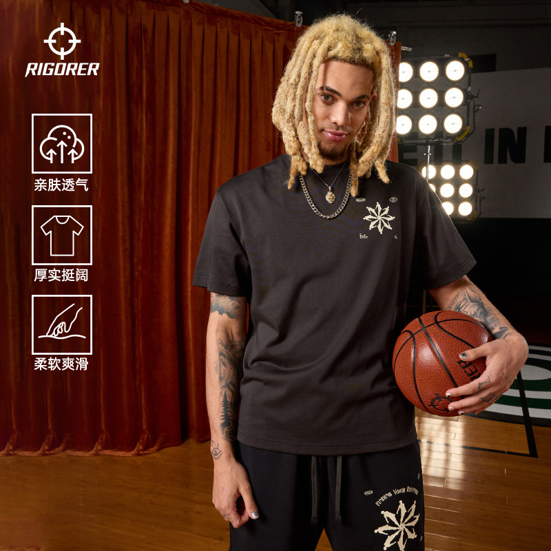 准者重磅纯棉短袖T恤男子夏季新款美式印花运动潮流宽松半袖上衣