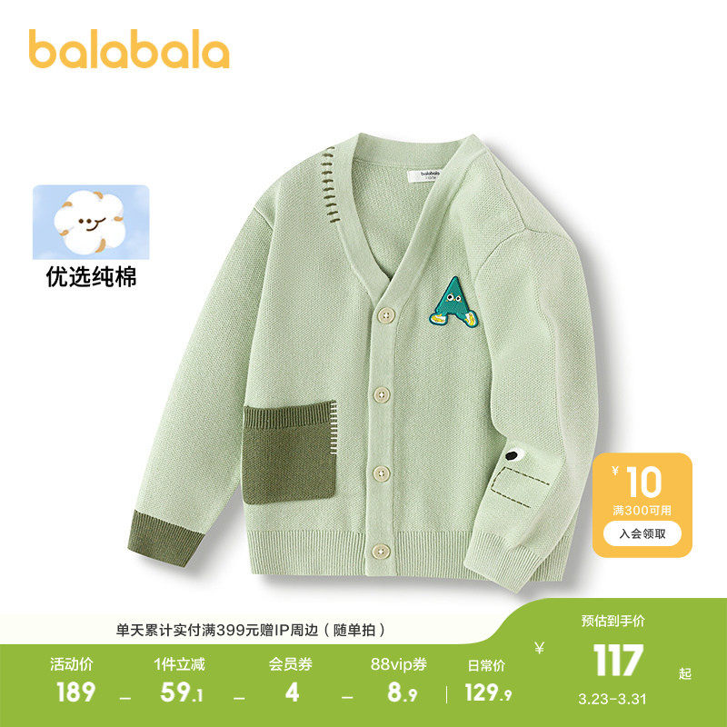 巴拉巴拉儿童毛衫男童春秋装V领百搭针织衫户外撞色开衫趣味章仔