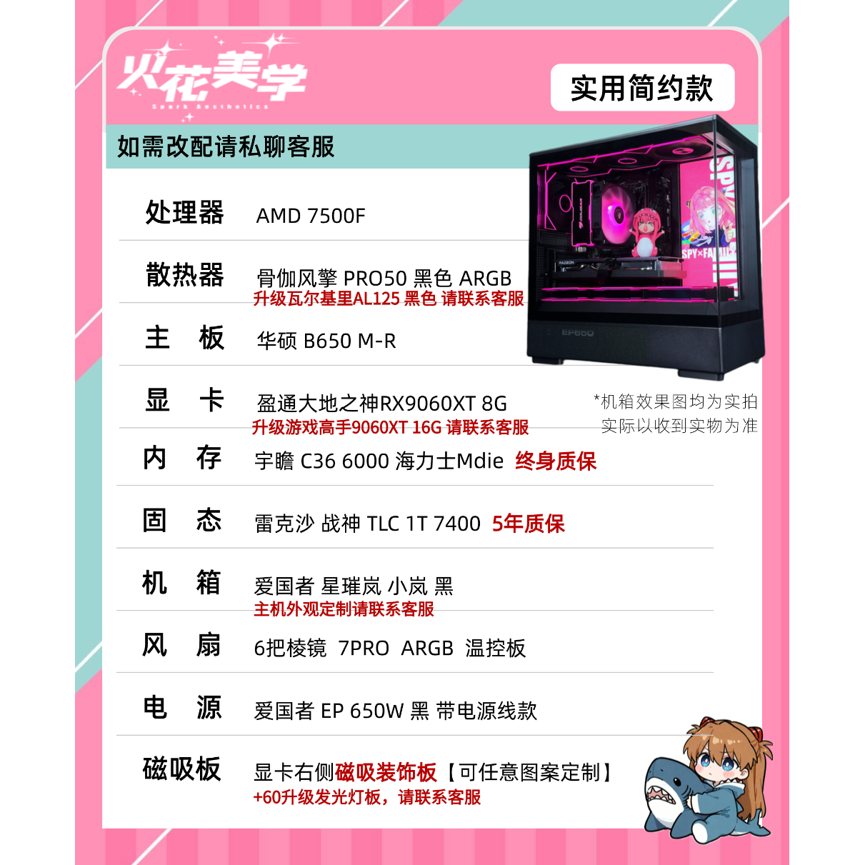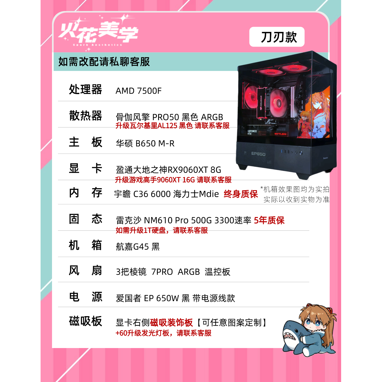 5000元定制主机 AMD7500F+9060XT DIY游戏电脑主机整机