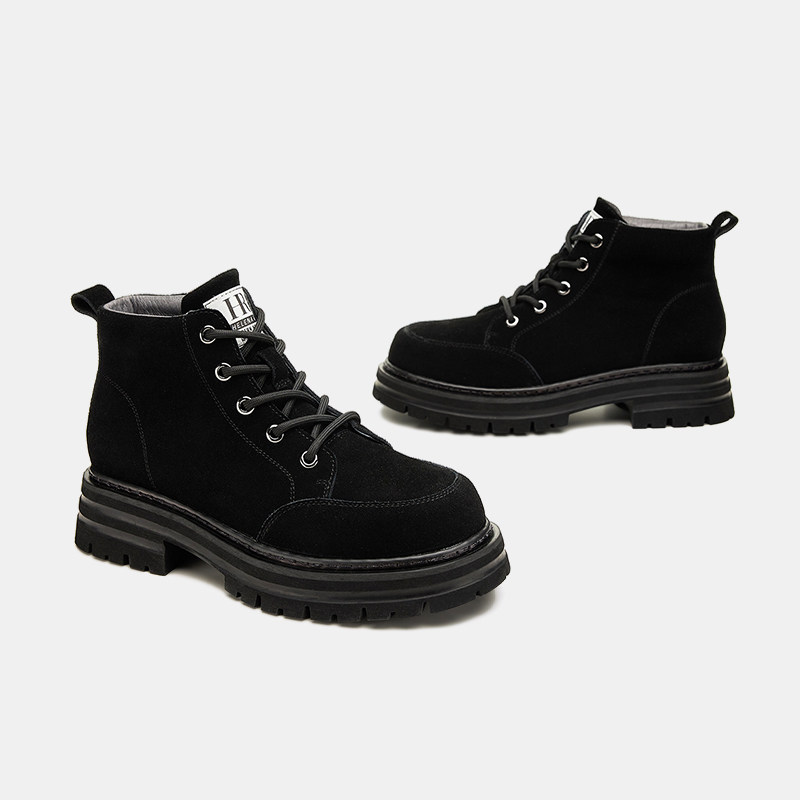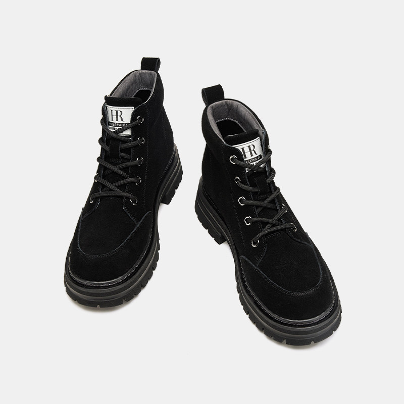 HR赫莲娜女鞋子2025秋季新款马丁靴增高厚底套筒百搭反绒皮短靴
