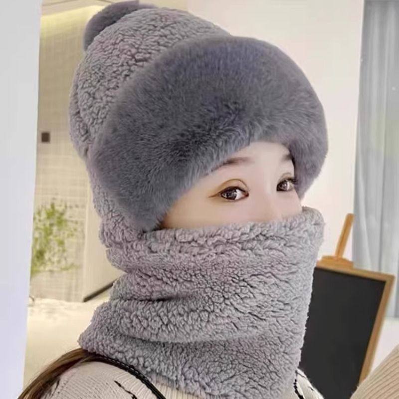 帽子女士冬季2025新款保暖骑车防风面罩防寒加厚护颈脖套围脖一体