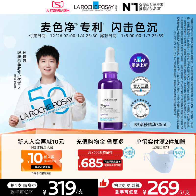 【立即预订】理肤泉MELA B3紫秒精华30ml 净透焕白淡斑 海外店A