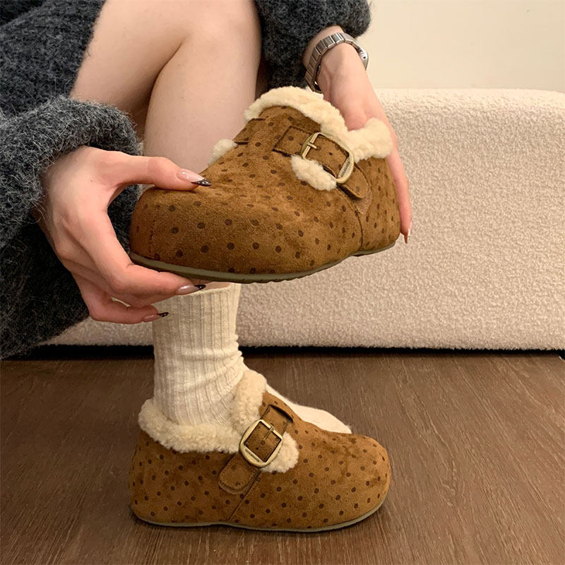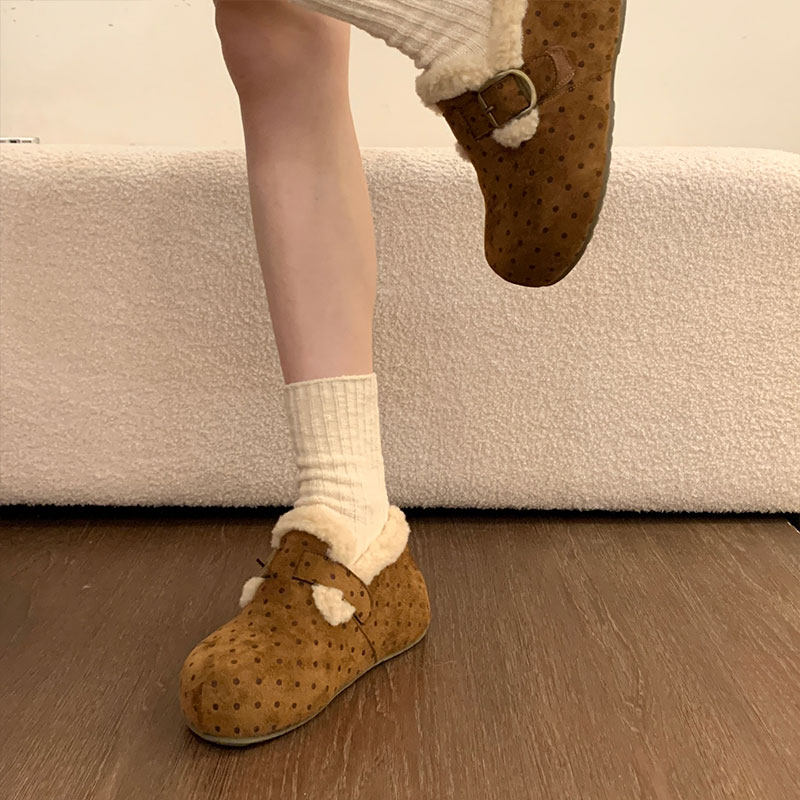 低帮厚底雪地靴女2025新款冬季懒人一脚蹬毛毛棉鞋加绒加厚女鞋子