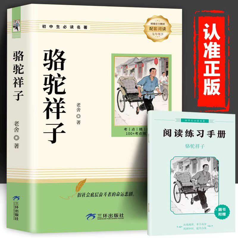 骆驼祥子和钢铁是怎样炼成的人教版原著七年级下册必读的课外书老舍正版书初一7阅读名著书籍初中生样子练成的赠考点手册