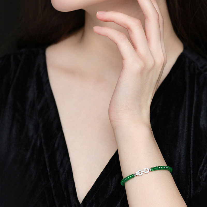 若华珠宝月牙泉=素面祖母绿手链女18K金宝石手串彩宝串珠手饰定制