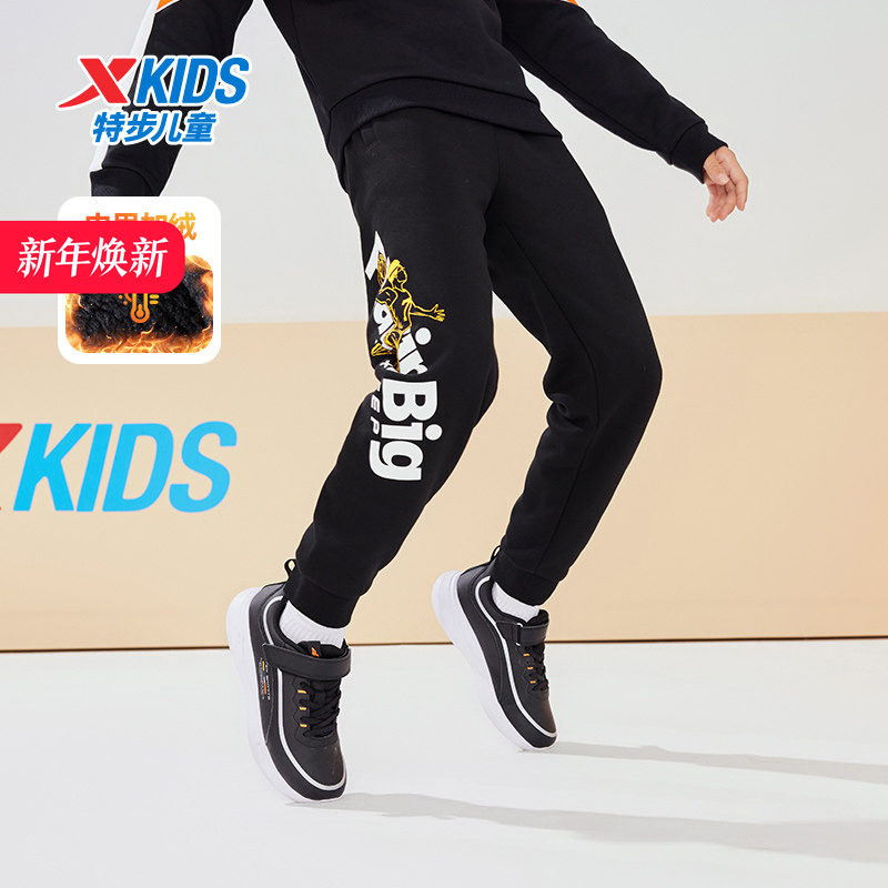 特步童装男童加绒裤子儿童长裤春秋中大童运动裤秋装棉裤正品清仓