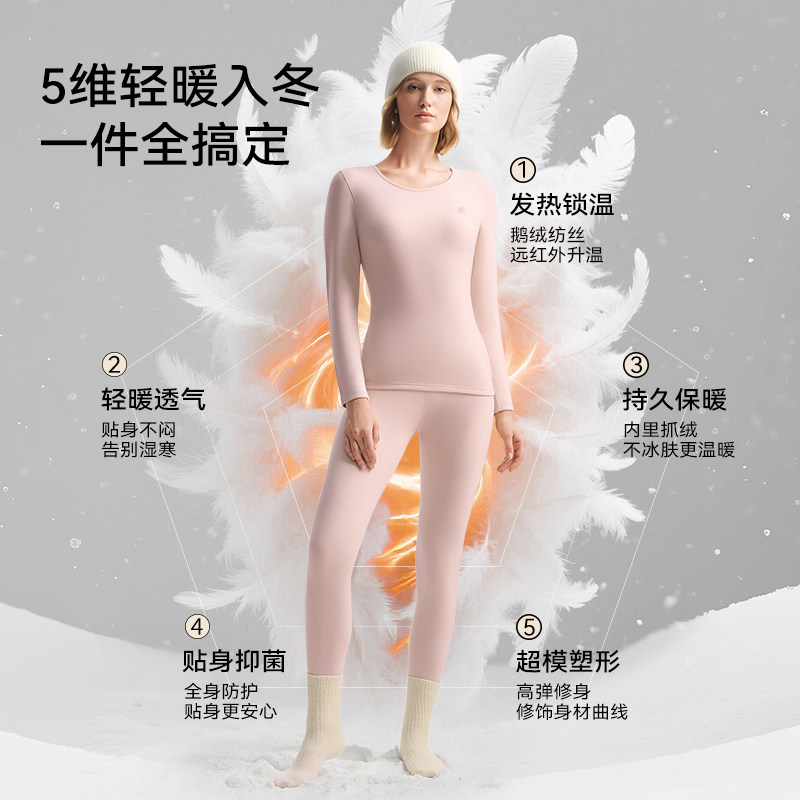 【古力娜扎同款直播限定】都市丽人羽绒保暖内衣女秋衣裤睡衣套装