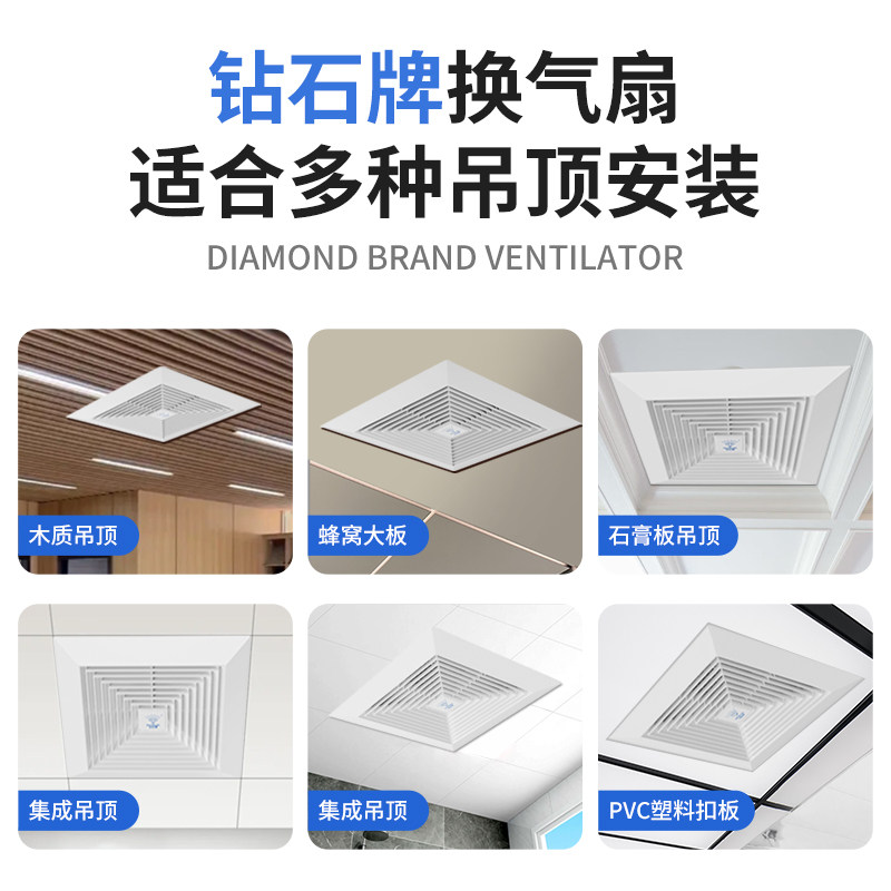 钻石牌换气扇家用卫生间抽风机排风扇卧室厨房排气扇管道强力静音