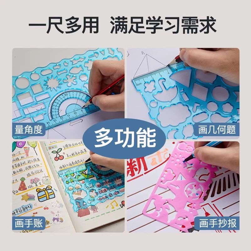 多功能万花尺绘图摸板尺子套装小学生专用手抄报模板几何波浪尺子