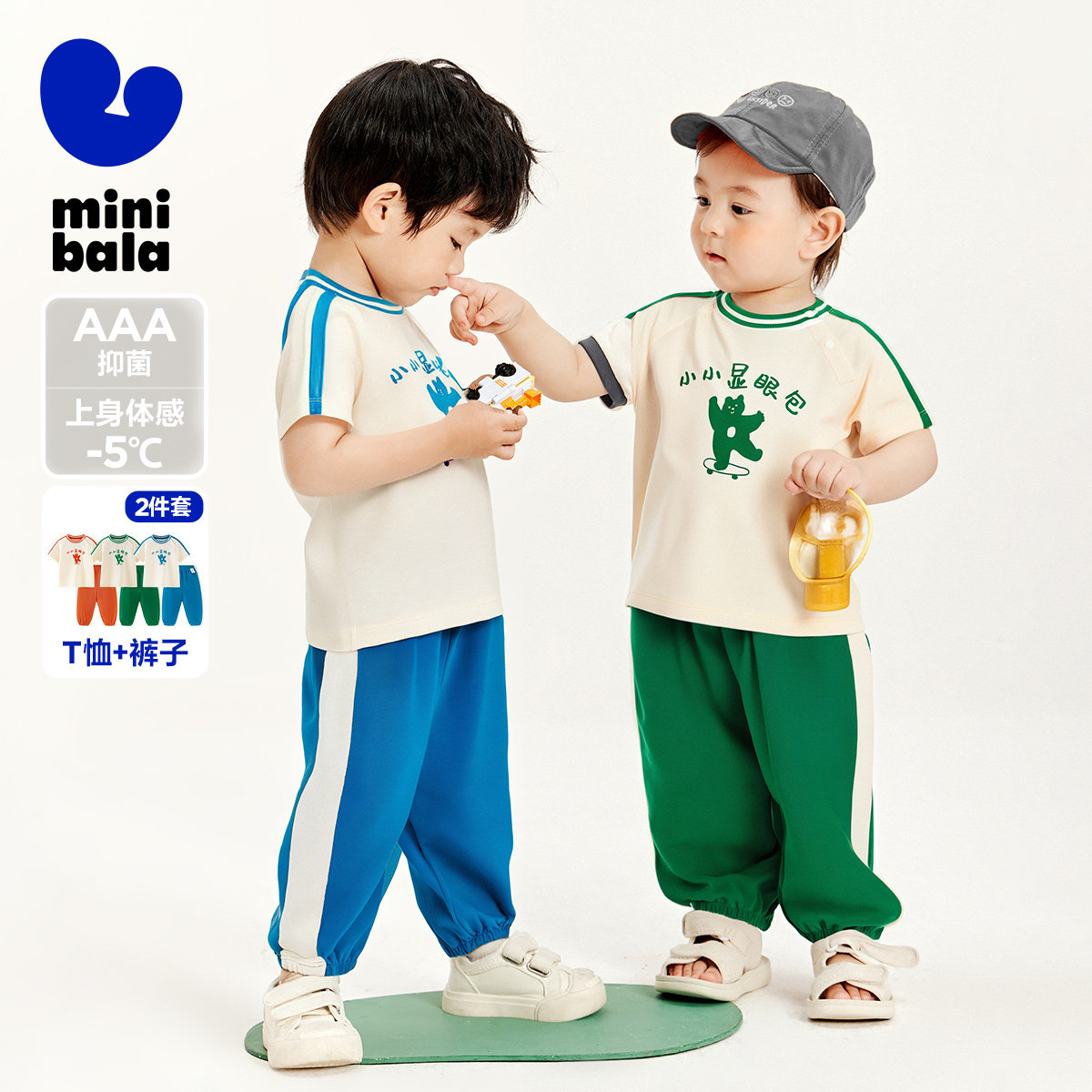 [凉感抑菌]迷你巴拉巴拉短袖套装男女童宝宝运动t恤长裤夏季新款