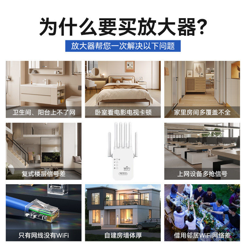 WiFiwifi信号放大器扩大器增强网络无线扩展器接收加强中继器家用桥接增加穿墙王双频5G路由器高速覆盖距离