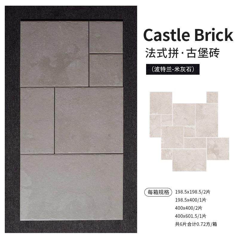 仿莱姆石地砖法式古堡字母砖 客餐厅仿古地砖户外庭院防滑莱姆石