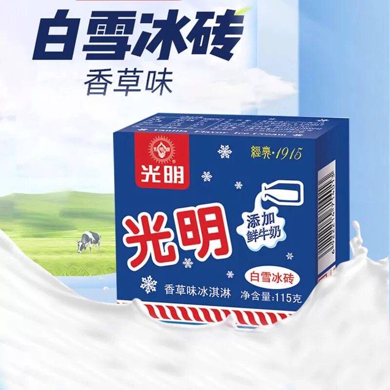 【顺丰包邮】光明白雪冰砖香草牛奶味中砖冰淇淋雪糕115g/盒冰糕