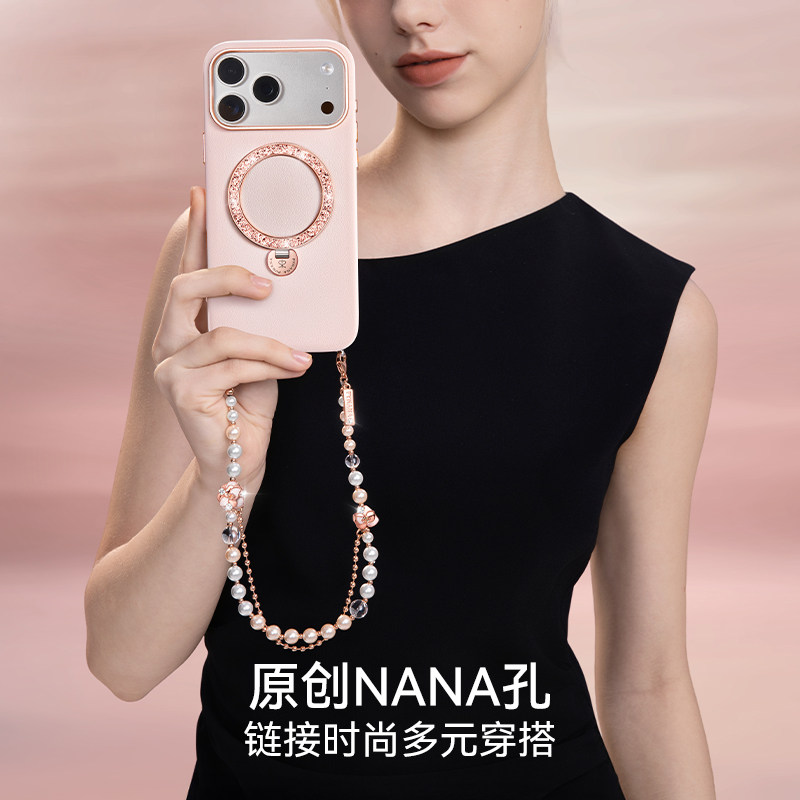 【明星同款】PYNANA翡娜娜圆舞曲适用iPhone17ProMax/17Pro/16ProMax手机壳苹果原创高级感珠宝磁吸支架皮女