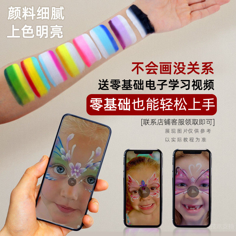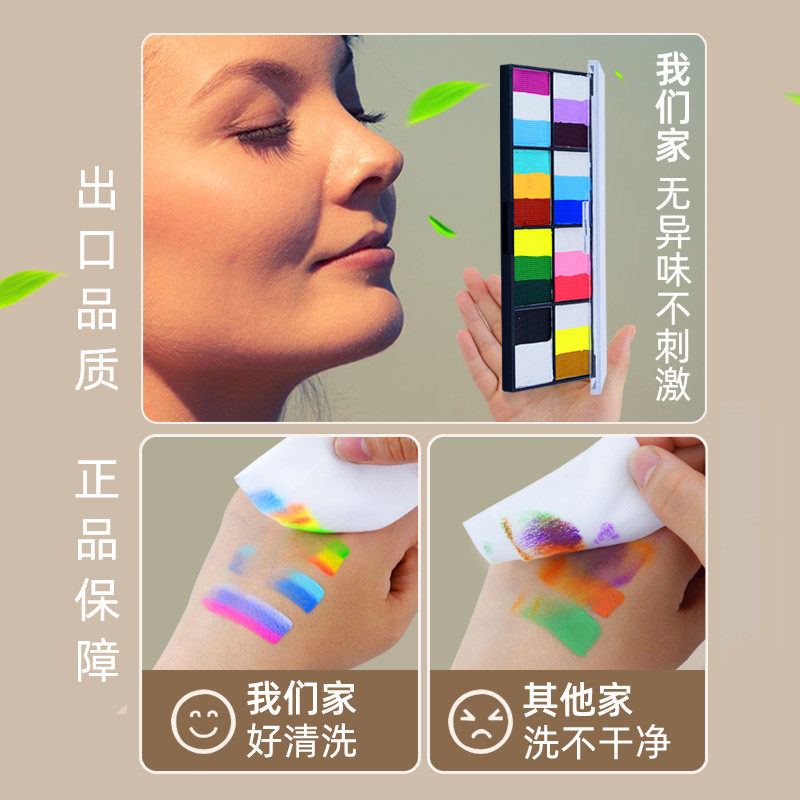 彩绘脸部颜料工具套装儿童舞台妆面部脸彩水溶性人体彩绘膏脸绘白色水性油彩盘幼儿人脸身体画脸上彩妆彩虹条
