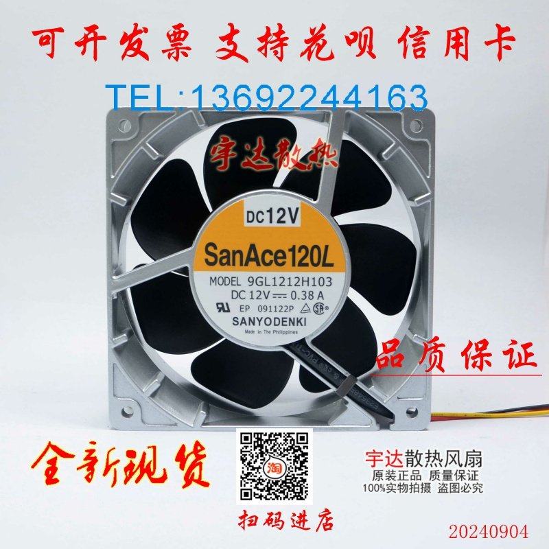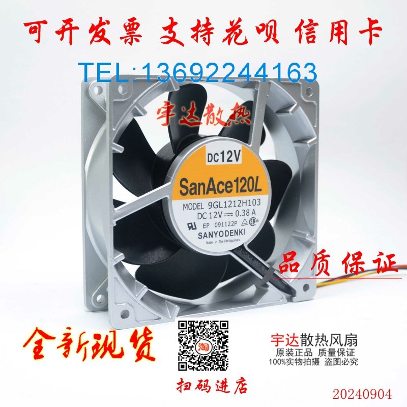 原装三洋12038 12CM 大风量铝框耐高温风扇12V 0.38A 9GL1212H103